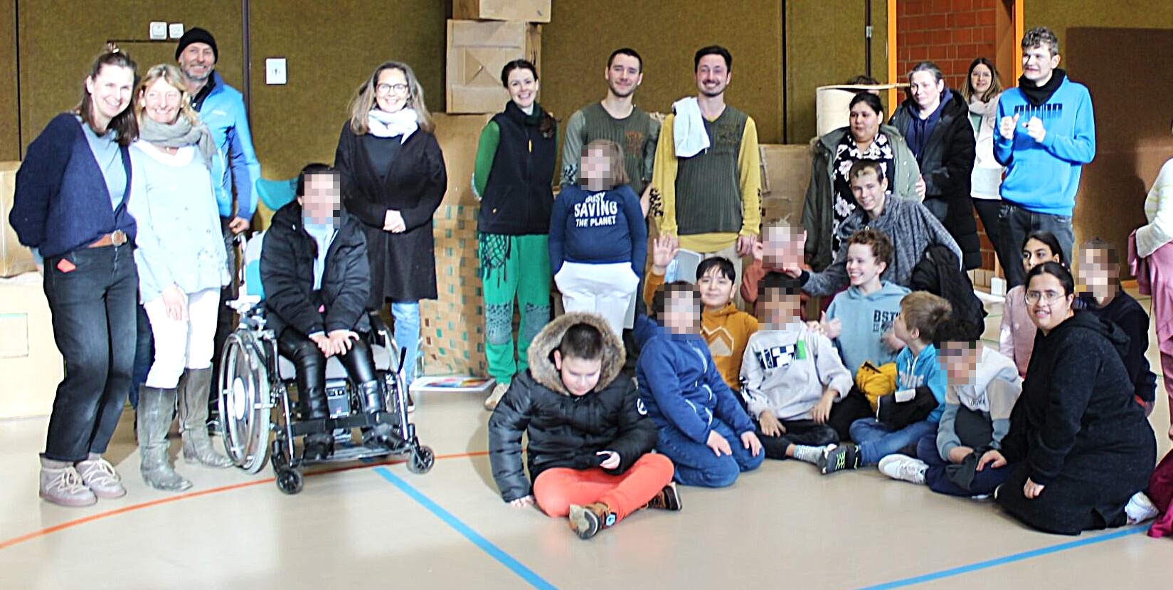 (hintere Reihe, 6., 7., 8. v. l.) sowie einige Schülerinnen und Schüler der Martinsschule nach der erfolgreichen Aufführung.