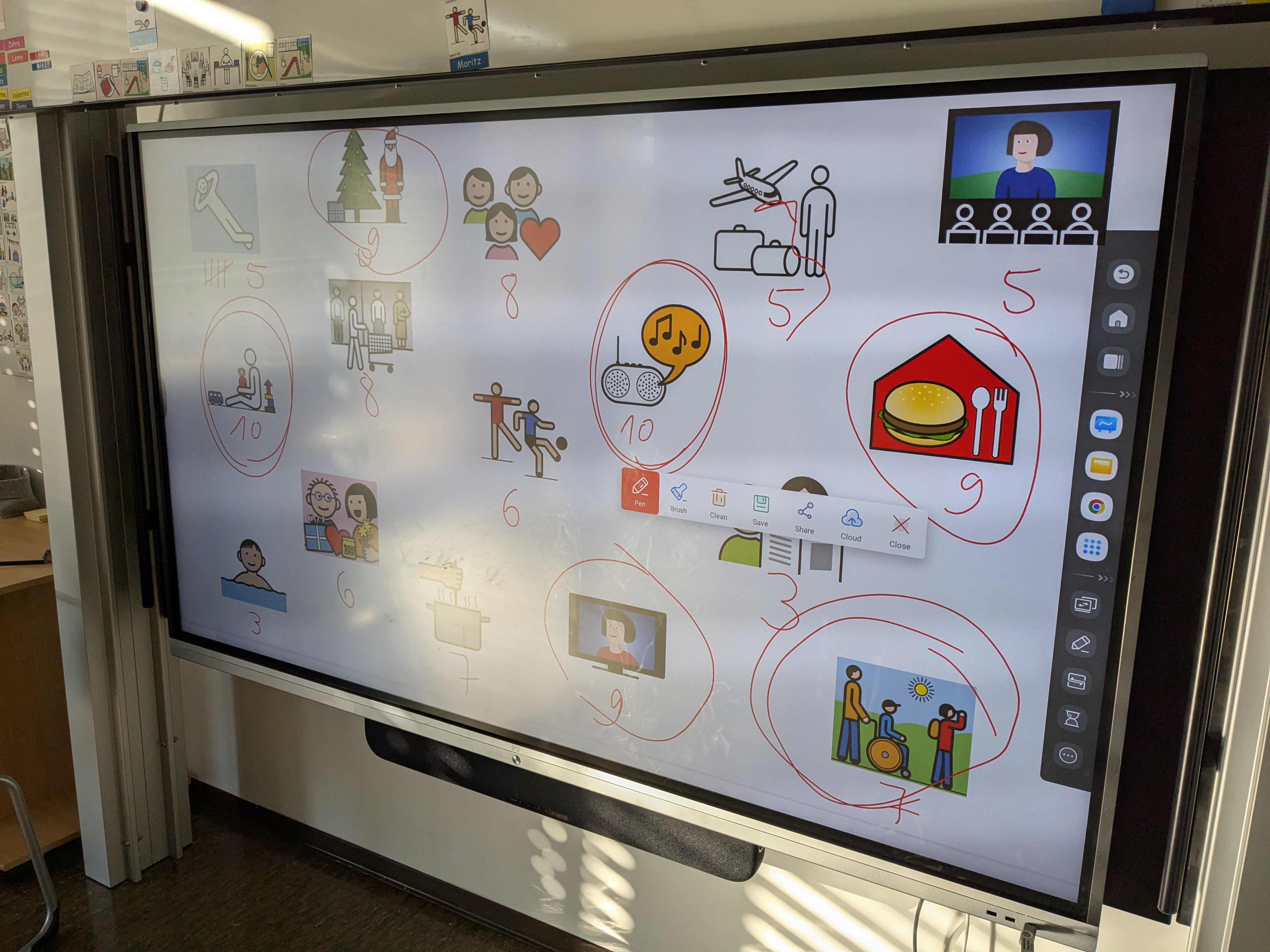 Bild: Unsere ausgefüllten Umfrage-Arbeitsblätter mit Metacom-Symbolen.