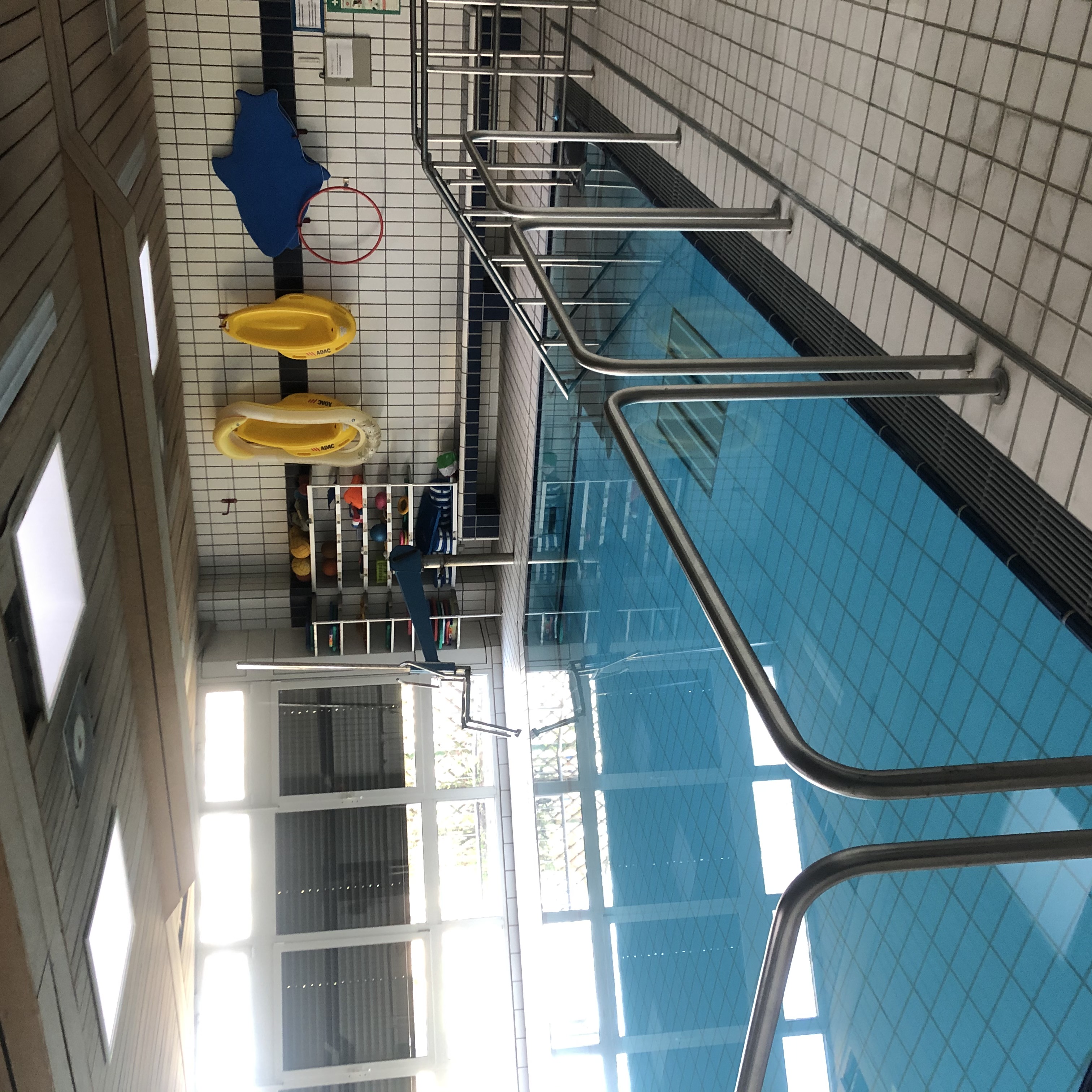 Für Motivation und Abwechslung sorgt die große Sammlung gut sortierter Schwimm-Utensilien wie Schwimmbretter, Bälle, Poolnudeln und Tauchringe.