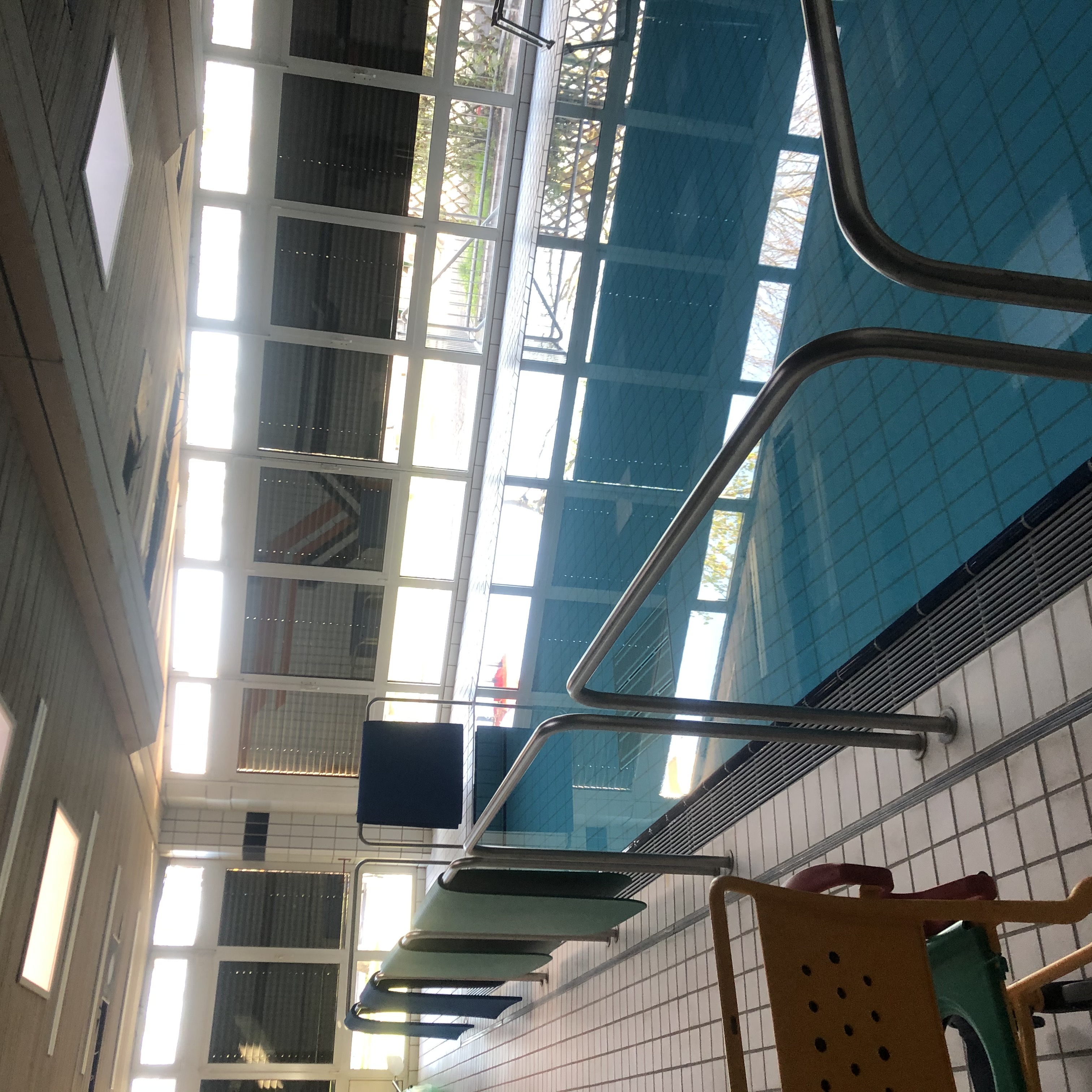 Wasser- und Raumtemperatur sind selbstverständlich regulierbar. So können auch Schüler:innen, die sich nur wenig bewegen, ihren Aufenthalt im Becken genießen. Die Hebesitzvorrichtung ermöglicht den Rollstuhlfahrer:innen den Zugang zum Becken.