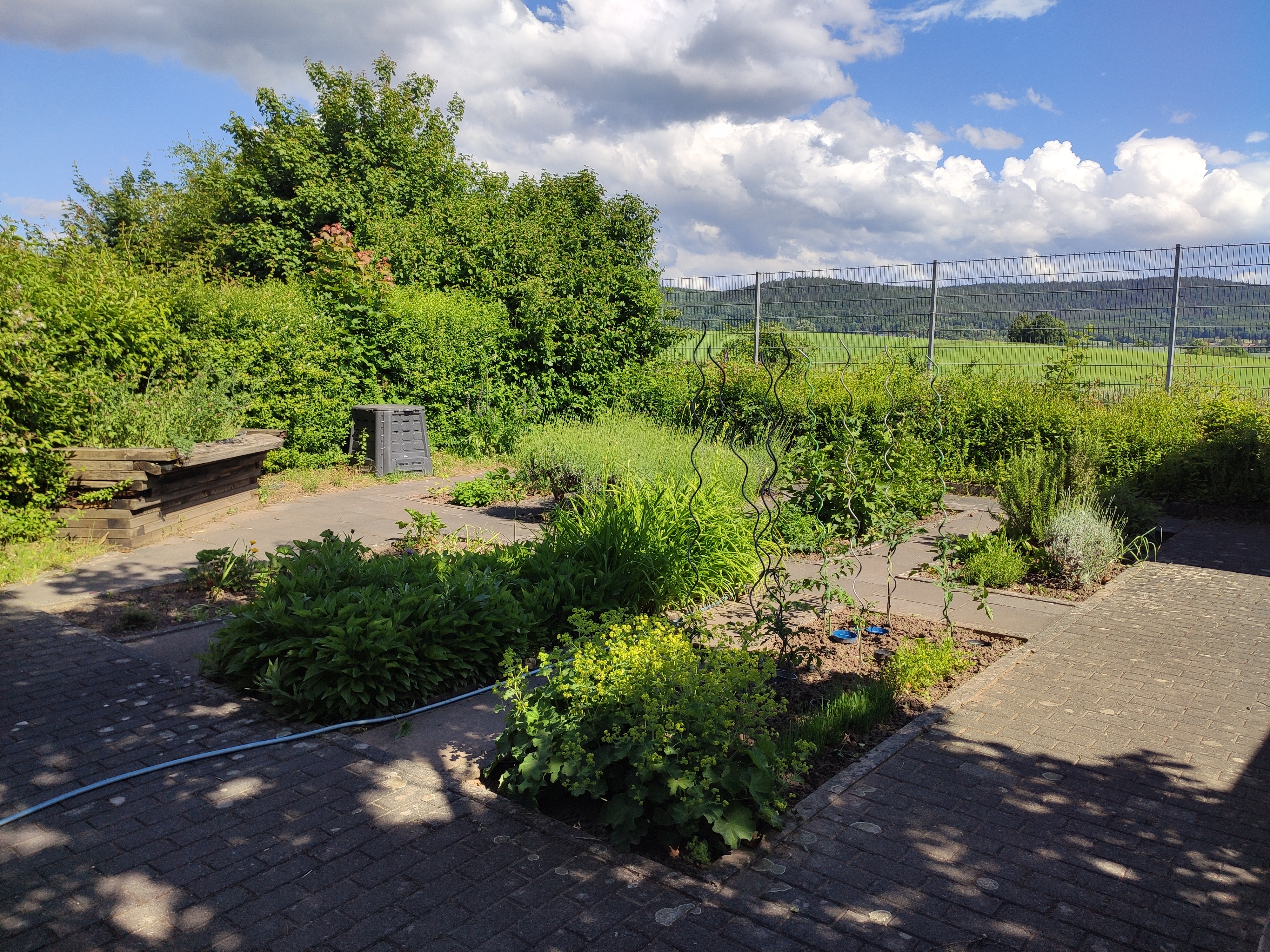 Eine Neugestaltung des Schulgartens ist in Planung. Als Erlebnis-, Ruhe- und Sinnesgarten soll er von allen Schüler:innen möglichst barrierefrei genutzt werden können. Dies erfordert umfassende bauliche Maßnahmen wie ein auf mehreren Ebenen angelegtes Beet in unterfahrbarer Hufeisen-Form.